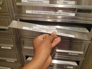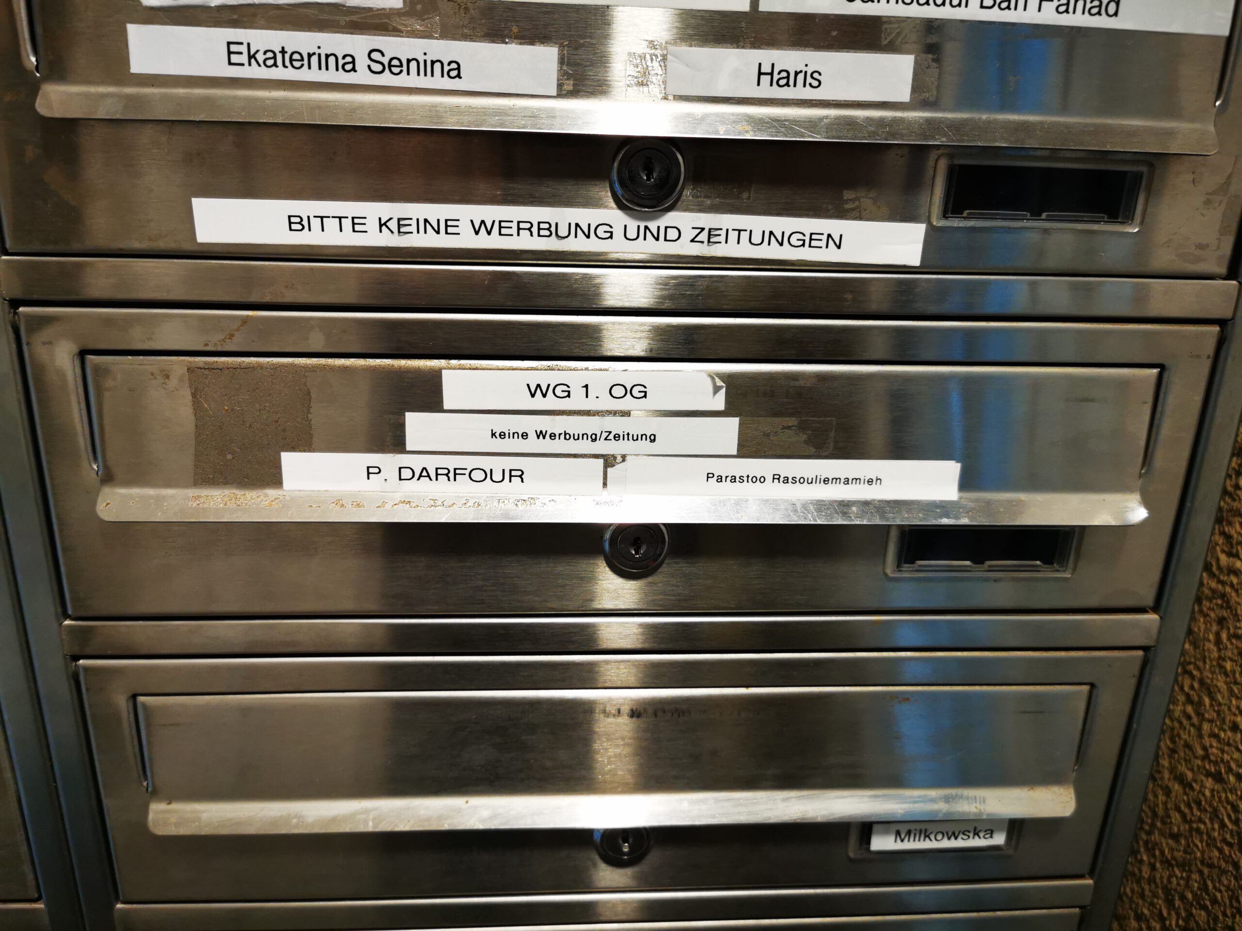 1 von 1: Schon wieder löst sich der Briefkasteneinwurfschlitz. Bitte überprüfen und beheben.